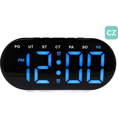 Stylový digitální budík s jasně modrými LED číslicemi nabízí perfektní čitelnost ve dne i v noci. Díky modernímu oválnému designu a přehlednému zobrazení dnů v týdnu v češtině...