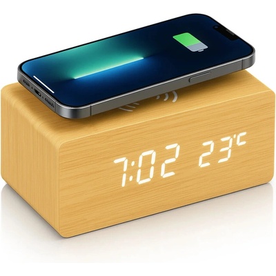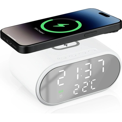 Objevte inovativní spojení funkčnosti a elegantního designu s budíkem, který integruje bezdrátovou Qi nabíječku o výkonu 10W.Elegantní digitální hodiny v pouzdře imitujícím...