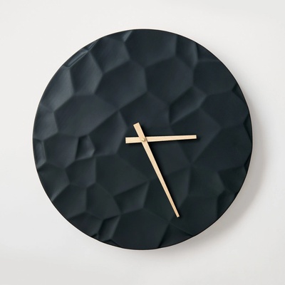 Minimalistické betonové hodiny Měsíční kráter o průměru 50 cm v grafitové (černé) barvě – ručně vyrobené v České republice. Tyto originální nástěnné hodiny spojují pevnost...