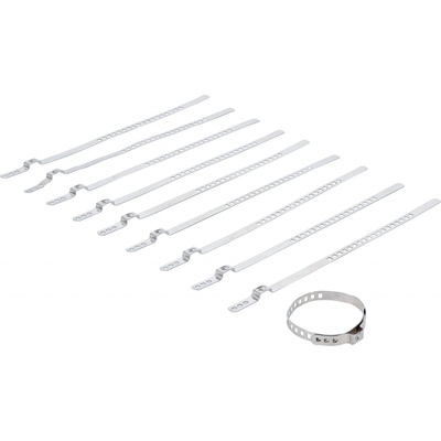 Pásky - spony na gumové manžety kloubů hnacích hřídelí na nápravách, nerezové, průměr 50 až 120 mm, sada 10 kusů v sáčku - BGS technic 70328 Perforované páskové svorky pro...