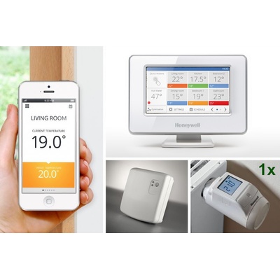 Honeywell Evohome - WiFi sada Starter Set pro chytrou regulaci vytápění rodinných domů, bytů a kanceláří. Sada Starter Set obsahuje 1 bezdrátové termohlavice a je tak výhodným řešením pro byty.