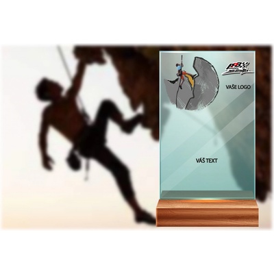 Horolezci, horolezkyně, horoležčata, nelezte na skálu, co je hodně špičatá... Je písnička z oblíbeného filmu, která je věnovaná horolezectví stejně jako tato skleněná trofej....