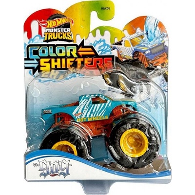 Trucky Hot Wheels® Monster Trucks Color Shifters™ přinášejí bourání s bonusem dvou dekorů na jednom trucku! Jednoduše ponořte truck Color Shifters™ do ledové vody, aby se zázračně změnil jeho původní vzhled, a pak ho zase změňte ponořením do teplé vody. Postup opakujte...