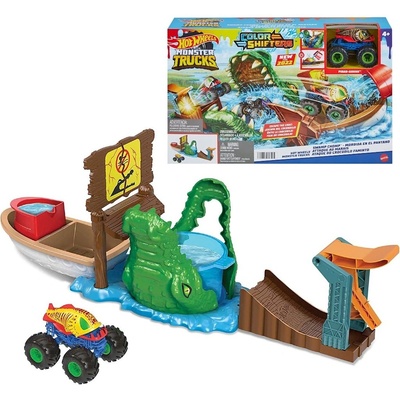 Herní set Hot Wheels Monster Truck Color Shifters Zuřivý krokodýl se dětem zalíbí. Užijí si s ním spoustu legrace při bourání cedule monster truckem, který najdou v balení....