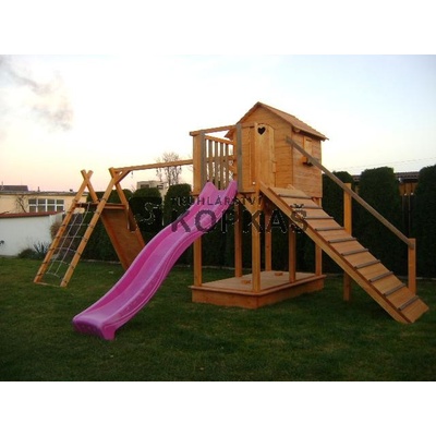 Houpačka se skluzavkou, lezeckou sítí a horolezeckými kameny Houpačka se skluzavkou a horolezeckými kameny je ideální řešení pro dětský koutek na Vaší zahradě. Sestava nabízí...