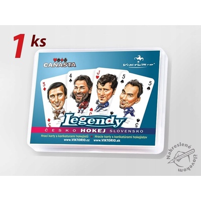 Ledová novinka ze série česko-slovenské LEGENDY: - kvalitní hrací kanastové/žolíkové karty s originálními karikaturami našich největších hokejových legend - pocta českému a...