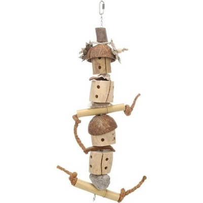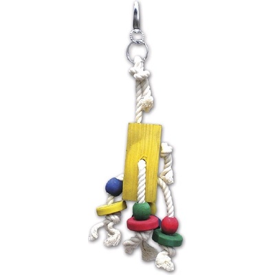 Hračka do klecí a voliér vyrobená z pevného a odolného materiálu proti okusu. Vhodná pro velké druhy papoušků. Dřevěné části jsou barveny zdravotně nezávadnými barvami....