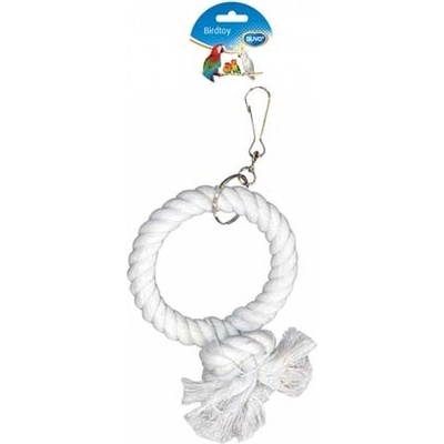 Popis: Kovový kruh omotaný bavlněným lanem slouží papouškům ke hře i odpočinku. Hračka je vhodná pro středně velké papoušky. Snadné připevnění ke kleci nebo do voliéry pomocí...