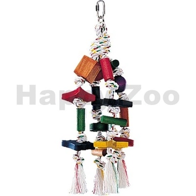 Hračka do klecí a voliér vyrobená z pevného a odolného materiálu proti okusu.Vhodná pro velké druhy papoušků.Dřevěné části jsou barveny zdravotně nezávadnými barvami.Velikost:...
