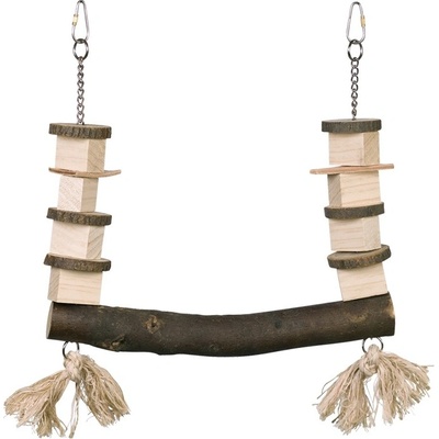 Kovová houpačka s dřevěným bidlem pro středně velké papoušky. Bidlo z borovicového dřeva je navlečeno na drátěné konstrukci tvaru domečku. Konstrukce je provlečená řetízkem s...