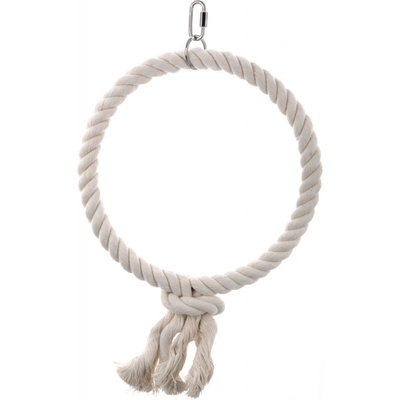 Lanový bavlněný kruh jako zábavná houpačka pro ptáky. Kruh se připevní pomocí kovové karabiny, která má bezpečnostní závit. Kruh drží tvar jelikož základem je kovový kruh,...