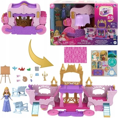 Souprava Disney Princezna Kočár-Zámek 2 v 1 k proměně S touto sadou Disney Princezna Kočár-Zámek 2 v 1, ve které se kočár pro malou panenku promění v krásný zámek, si můžeš...