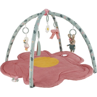 Měkká hrací deka ve tvaru květiny s hrazdou, na které jsou zavěšené hračky v podobě srnky, ptáčka, květiny, jahůdky a houby. Při zkoumání hraček upoutá pozornost dítěte...