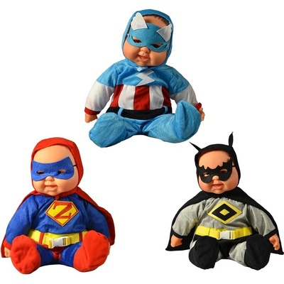 Hadrový panáček v obleku hrdiny s měkým tělem, plastovou hlavičkou, ruckama a nohama. Panáček mám odnímatelnou šraboškou a šátkem (popřípadě čepkou). Rozměr panenky je 50x28x14...