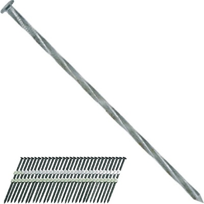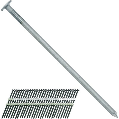 Hřebíky páskované na papírovém pruhu pod úhlem 34°. Hřebík s D hlavou o průměru 3,1 a v délce 90 mm, konvexní(kroužkový), pozinkovaný. V balení je 2200 ks hřebíků. Bez...