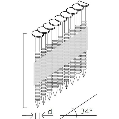 Hřebíky s plynem páskované na papírovém pruhu pod úhlem 34°. Hřebík s D hlavou o průměru 2,8 a v délce 63 mm, konvexní(kroužkový). V balení je 2200 ks hřebíků. Bez...