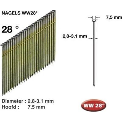 Bostitch S28050 Parametry: - pr. hřebíku: 2,8 mm - pr. hlavy hřebíku: 7,5 mm - délka hřebíku: 50 mm - Sklon: 28° +- 1,5° - Povrchová úprava: - počet ks v balení: 2000...