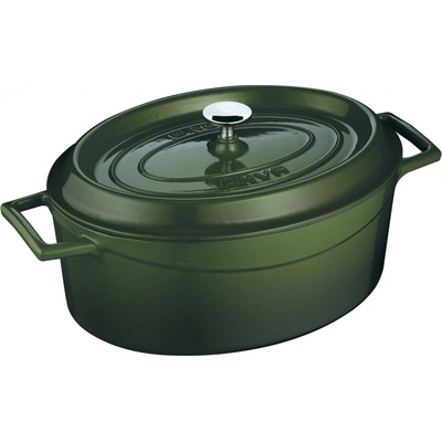 smaltovaný, vhodný na plynovou, elektrickou, indukční a sklokeramickou varnou desku, oválný tvar, objem 4,8 l, smaltovaná rukojeť, silné dno, nepřilnavý povrch, použití v troubě...