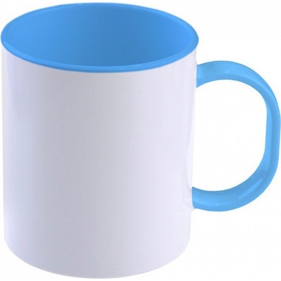 Hrnek bílý s barevným vnitřkem a uchem v barvě světle modré - vyrobený ze sublimačního polymeru vypadá docela podobně jako běžný keramický hrnek na kávu, přesto je zcela bez...