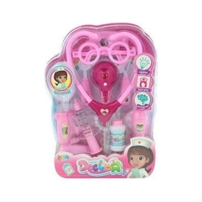 Výbava obsahuje vše co potřebuje malý doktor nebo malá doktorka. Doktorská sada obsahuje: stetostkop, brýle, stříkačku, mikroskop a další doplňky. Napájení stetoskopu na 3 AG13...
