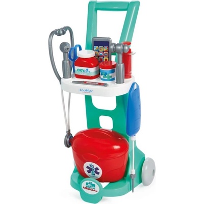 Lékařský vozík Medical Trolley od francouzského výrobce Écoiffier představuje vynikající dárek pro děti od 3 let, které si rády hrají na doktory. Tyrkysový vozík s červeným...