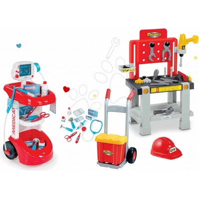 Které dítě nemá rádo hru na doktora nebo šikovného mistra opraváře? Set hraček lékařský vozík s tlakoměrem Smoby a pracovní dílna s rudlem a přilbou, je moderní souprava...