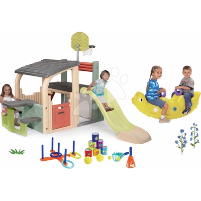 Smoby Set domeček se zahradní restaurací Chef House DeLuxe a prolézačka s pískovištěm a skluzavkou a sportovní hry na zahradu
