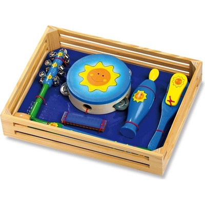 Tato sedmidílná hudební sada je skvělým začátkem pro ty nejmenší při seznamování se s rytmy a hudbou. Sada obsahuje buben, kastaněty, harmoniku, flétnu, trubku, pár maracasů...