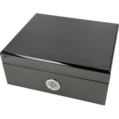 Vada povrchu - na označeném místě má humidor jemný škrábanec - kaz, který velmi slabounce vystupuje na povrch. Stolní humidor na doutníky Carbon Design s kapacitou cca 25...