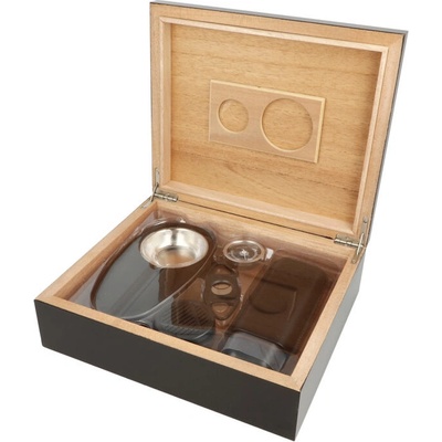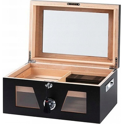 Stolní prosklený humidor na doutníky s kapacitou cca 75 doutníků (v závislosti na jejich velikosti). Uzamykatelný humidor v černé barvě má povrch v matném provedení. Horní a...