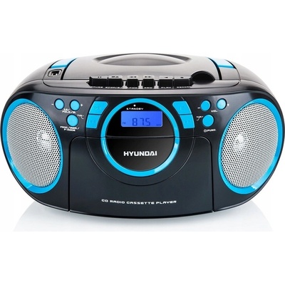 Boombox Hyundai TRC 788 AU3BS Černý/Modrý Radiomagnetofon, kazetový, CD-R/CD-RW, MP3, AUX-IN vstup, USB vstup - Přehrávání médií: Magnetofonová kazeta, CD, AUX, USB paměť - Podporované formáty: MP3, WMA - Podporované paměťové karty: nepodporuje Tuner - Tuner:...