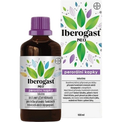 Iberogast Neo je fytofarmakum (rostlinný lék), který léčí zažívací potíže, jako jsou bolest a pálení v horní části břicha, pocit plnosti po jídle, předčasné nasycení, pálení žáhy, ztráta chuti k jídlu a nadměrné říhání.