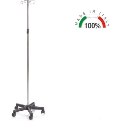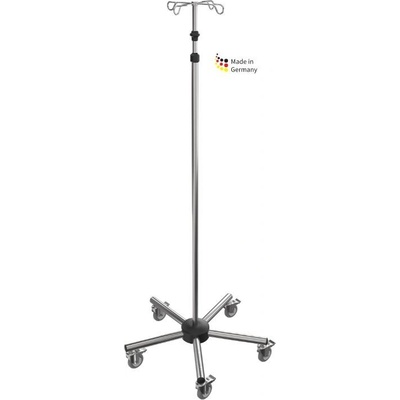 Pojízdný nerezový infúzní stojan s nastavitelnou výškou 135 - 215 cm. Provedení: pojízdný nerezový stojan, šroub pro aretaci výšky, polypropylenový závěsný kříž, odkapávací...