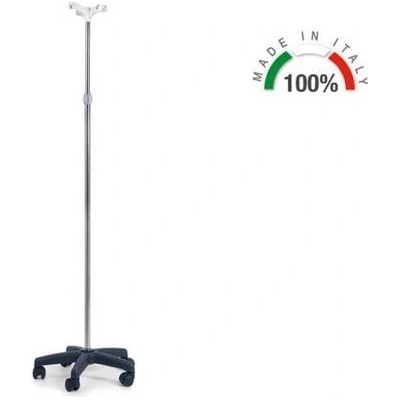 Pojízdný chromovaný infúzní stojan s nastavitelnou výškou 135 - 215 cm. Provedení: pojízdný chromovaný stojan, šroub pro aretaci výšky, polypropylenový závěsný kříž, odkapávací...
