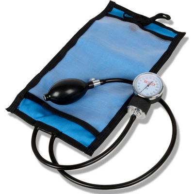 Ekonomická infuzní manžeta - 500 ml Tlaková manžeta pro infuzi s pochromovaným manometrem Ø 49 mm až do 300 mmHg. Pevná modrá bavlněná manžeta, kterou lze prát na 60° Latexový...