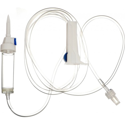 Soupravy slouží k terapeutickému podávání infúzních roztoků a injekčních roztoků z lahví nebo plastových vaků působením gravitace do žíly pacienta. Popis výrobku: 15 µm infúzní filtr hydrofóbní bakteriální filtr v zavzdušňovacím kanálku propichovacího trnu 20 kapek...