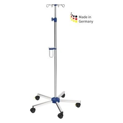Nerezový infuzní stojan na kolečkách se 4 plastovými háčky na udržení 4 infuzních lahví. Stojan se dá přizpůsobit kterékoli pacientově výšce. Výška se nastavuje uvolněním plastové pojistky a vysunutím / zasunutím tyče. Stojan je vybaven kolečky, což usnadňuje práci...