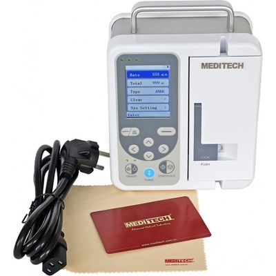 INFUZNÍ PUMPA MEDITECH pro veterináře funguje na principu volumetrické pumpy tzn. odkapávacího peristaltického systému. Je kompatibilní s většinou infuzních SETŮ (makro/mikro...