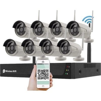 Bezdrátový kamerový systém WIFI s 8 kamerami s rozlišením 2 Mpix - 1 920 (H) * 1 080 (V)Bezpečnostní kamery jsou v plastovém, vodotěsném (IP65) pouzdře s nočním přísvitem až do...