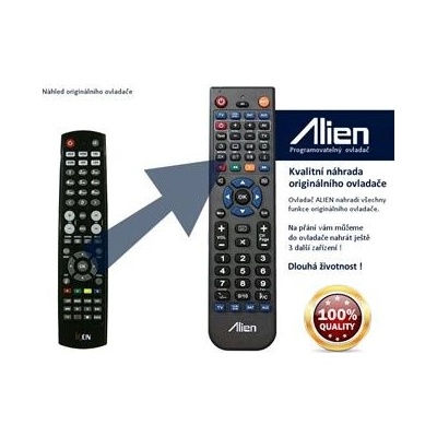 Dálkový ovladač Iqon Force-1 Kvalitní náhradní dálkové ovládání jiného vzhledu pro Satelitní přijímač Iqon. Pod značkou ALIEN získáte kvalitní a levnou náhradu...