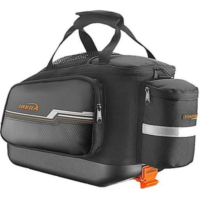 Další z kvalitních brašen na nosič od značky Ibera s jednoduchým Clip-On systémém PakRak,brašna má pevné dno, dvě boční a jednu zadní kapsu na zip,na vrchním uzávěru gumicuk pro uchycení lehkých zavazadel,zadní poutko a kolem zipu ve vrchní části je spousta reflexních...