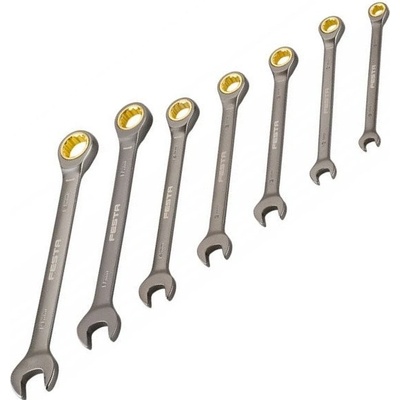 Sada nejpoužívanějších ráčnových klíčů FESTA pro použití s výhodou rohatky (ráčny). Klíče jsou vyrobeny kováním z kvalitní chrom-vanadové oceli. Tato ocel je zušlechtěná na...