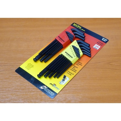 Sada 9ks metrických + 13ks palcových profesionálních imbusových klíčů s kuličkou BLX 22 , úhel 25° Metrické klíče : 1,5mm 2mm 2,5mmn 3mm 4mm 5mm 6mm 8mm 10mm Palcové klíče :...