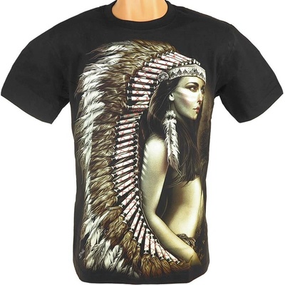 Pánské tričko s potiskem indiánka Černé bavlněné tričko s potiskem indiánky a klasické indiánské čelenky. Jedná se o skutečně kvalitní triko s prvotřídním potiskem, které je...