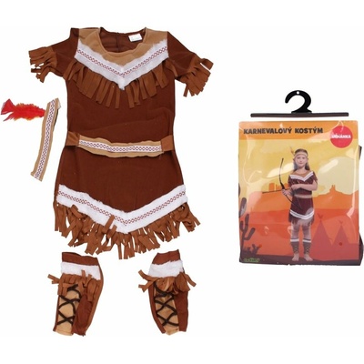 Set karneval indiánka. Pro děti o velikosti 110-120 cm. Součásti kostýmu: šaty, čelenka, pásek, návleky.
