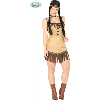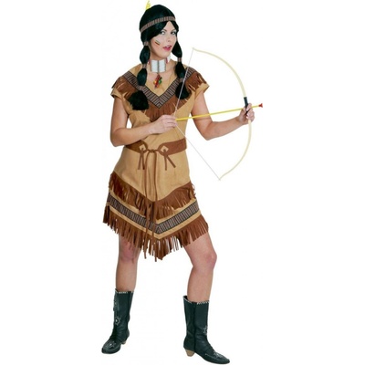 Béžovo-hnědý indiánský kostým pro ženy. Indiánský kostým v klasickém tématu, který nikdy nevyjde z módy. Na každé kostýmové párty se tak můžete proměnit v autentickou indiánku...