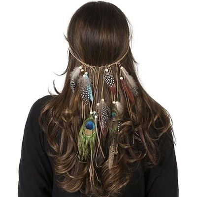 Klíčové vlastnosti doplňku ke kostýmu Funny Fashion indiánská čelenka na vlasyLuxusní čelenka pro indiánskou krásku, zdobená korálky a barevným peřímSkvěle doplní maškarní...