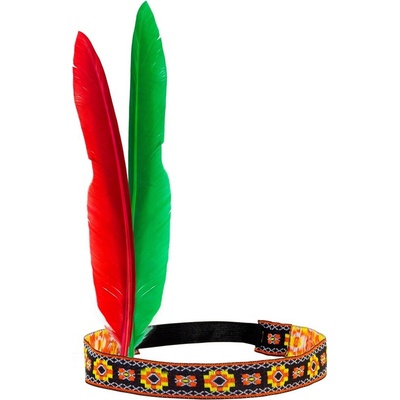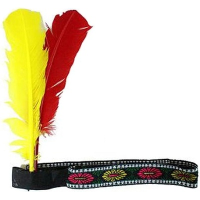 Krásná barevná čelenka s červeným a žlutým pírkem je nepostradatelným doplňkem pro indiánský kostým. Na čelence je našitá gumička, která díky tomu nebude sjíždět z hlavy a je...