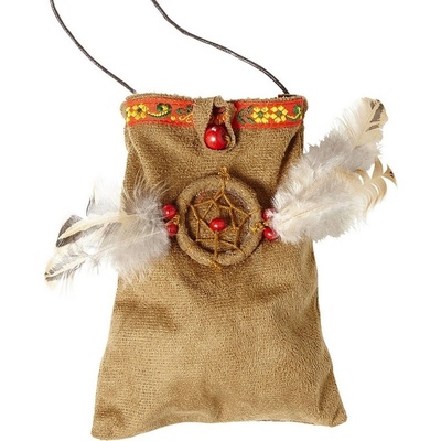 Indiánský sáček s peřím dotvoří váš kostým indiána k dokonalosti. Ideální doplněk k vašemu kostýmu na karneval nebo tématickou párty.