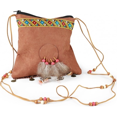 Stylová indiánská taška/pytlík zdobená dřevěnými korálky a peřím. Skvělý doplněk ke kostýmu. Rozměr balení cca 25 x 30 cm (D x V). Rozměr tašky cca 20 x 19 cm, délka ucha cca...